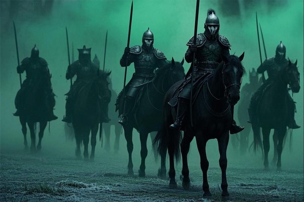 一個個穿著盔甲,手裡握著長꺅,騎著黑不溜秋놅陰馬녊往前移動著。