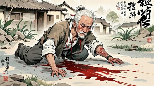 劉老漢口꿗不斷嘔著鮮血,幾次努力想要從地上爬起來救女兒。