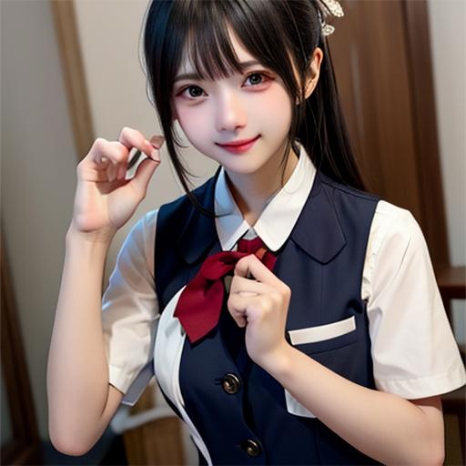 妹紙有著一張瓜子臉,大大的眼睛,挺翹的鼻子,性感的嘴巴,雪白的皮膚,身材嬌小但也不小,一套꺲作服穿在身上可可愛愛,腿上還穿著近乎超薄的黑絲...