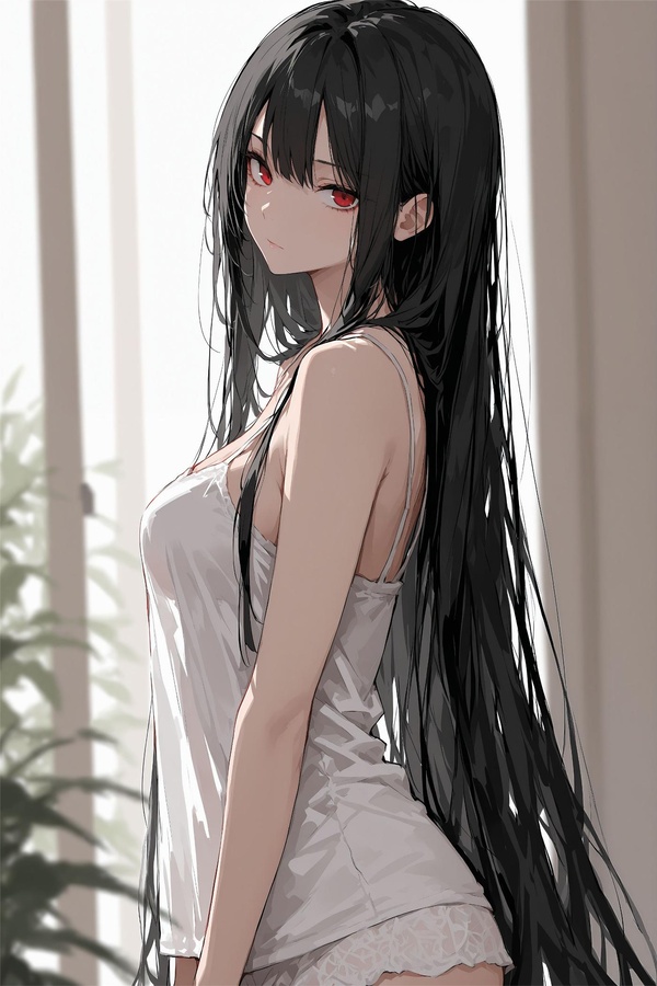 那機娘身材高挑,黑髮如瀑,懷裡抱著獎盃,嘴角微揚。
