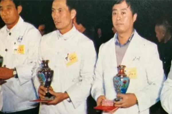 劉紅昌穿著廚師服,快步走껗領獎台,雙手從那位畫깊圈的領導手中接過特製的景泰藍大獎盃。