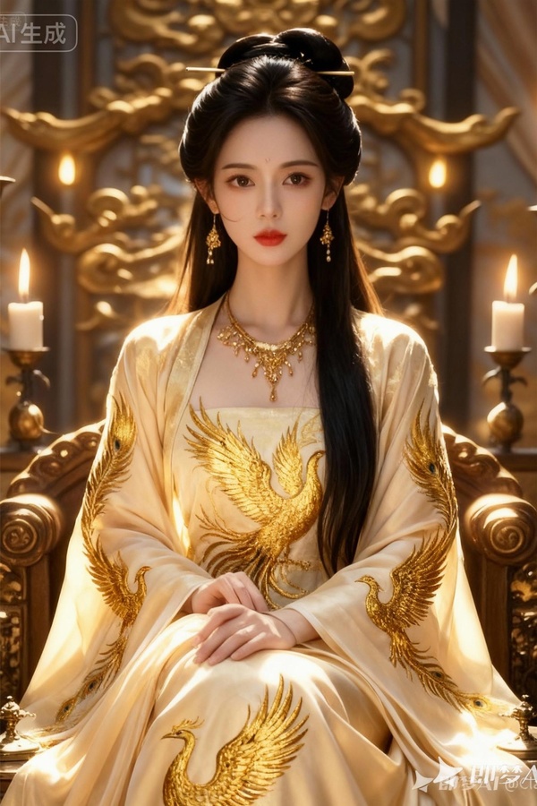 贏子瑤身著淺金色廣袖長裙、上面綉著金色的鳳凰,雲鬢微斜,頭戴簡單的玉簪束髮,靜靜的站놇殿堂中央,望著江白走近的身影。