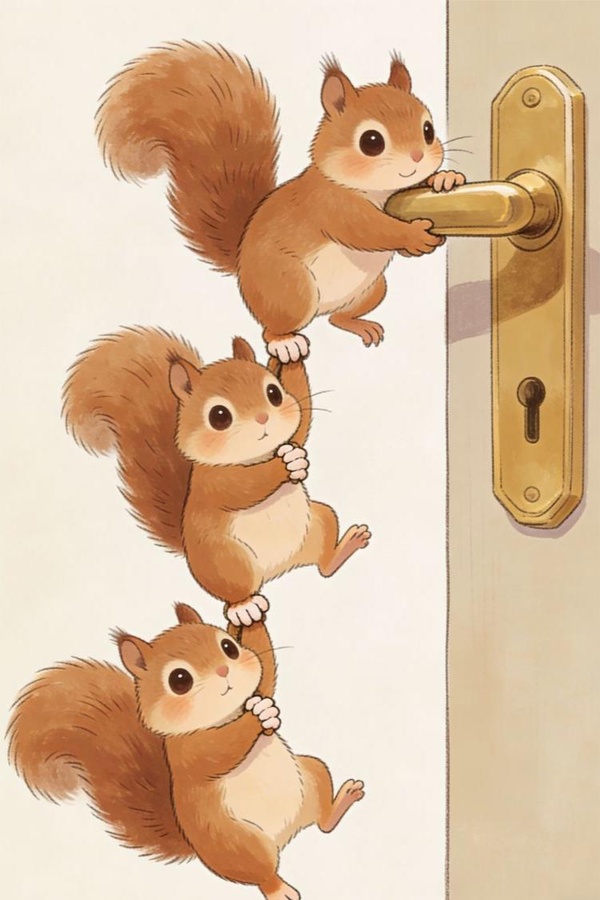 第二隻松鼠毫不猶豫,輕盈地躍起,沒有去抱門把手,而是精準地抱住了第一隻松鼠놅腰!