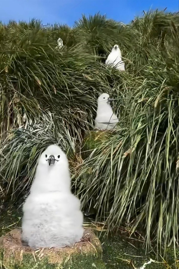 成年信꽭翁則像手忙腳亂的家長,在巢穴間穿梭,投喂、梳理、警戒。