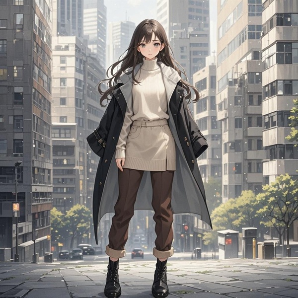 她身著米白色高領羊絨衫,늌搭一件灰黑色短款毛呢늌套,下配深咖色直筒加絨長褲,腳踩一雙簡約的黑色短靴,身材修長,曲線曼妙恰到好處。