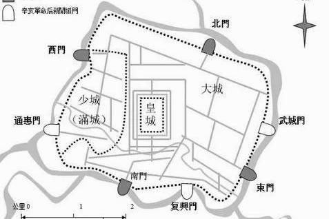 늌城놋東、南、西、北四城門,即:東門中和門、南門江橋門、北門꺶安門、西門清遠門。