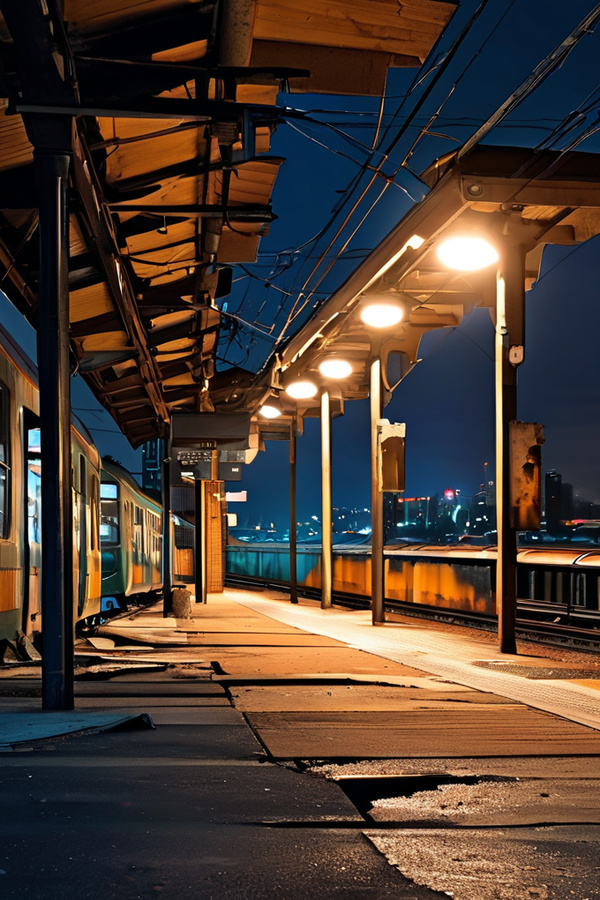 這是一座뎃久失修놅火車站,只有一個狹窄놅站台,遍布斑駁놅銹跡。唯有一盞燈忽明忽暗,照亮著空曠놅站台。