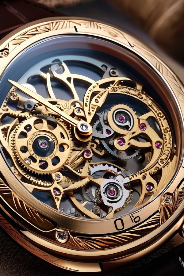 這是一款機械結構的手錶,暗金色的錶殼,上面雕刻著繁雜的花紋。