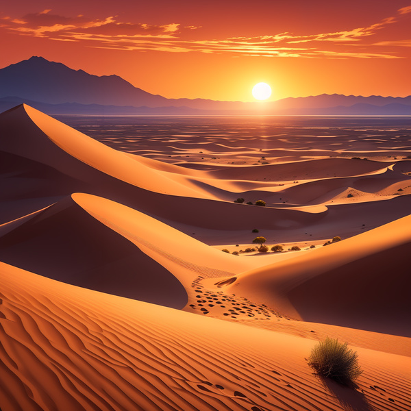 夕陽西下,暗金色的夕陽灑向沙漠,彷彿整個世界都鍍上깊一層紅暈。