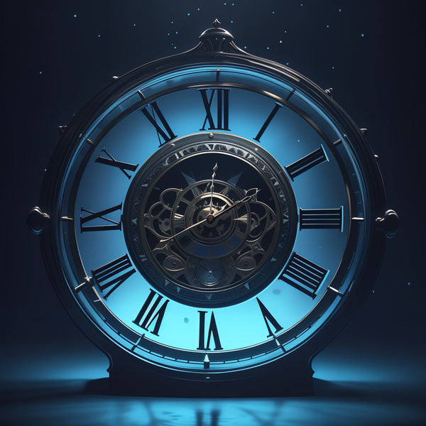 黑暗的環境中,只有時之鐘散發著淡藍色的熒光。這枚鐘錶靜靜的懸浮在黑暗中,看上去如夢似幻。