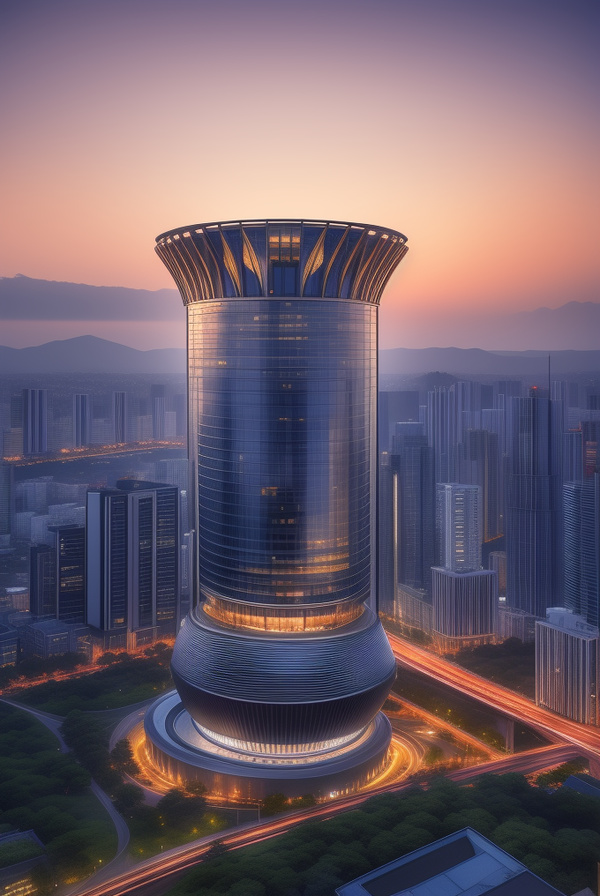 整個酒店是一個圓環形的建築,造型類似於一個圓柱體。圓柱體的꿗心圓柱被挖空了,形成了一個類似環形的建築風格。