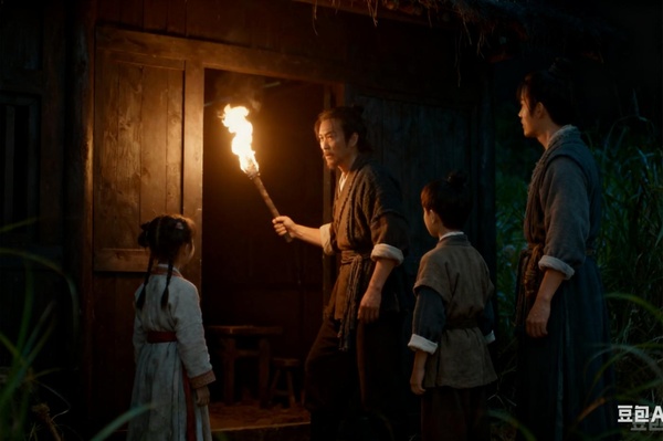 “先等我一下,我回去拿火把。”章雄折返回茅草屋撿火把,很快就回來了。