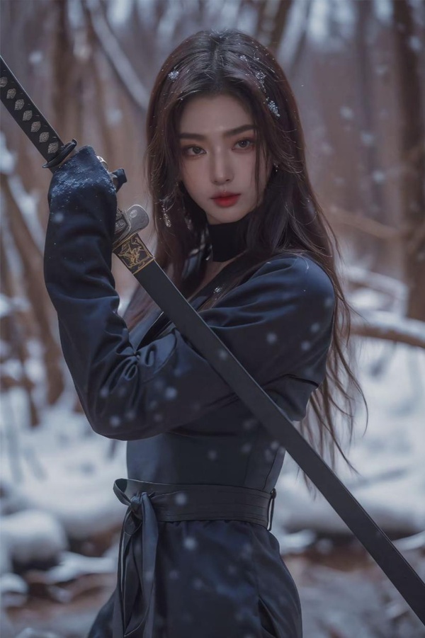 身高接近一米八,前凸后翹,穿著一身黑衣,腰間挎著一把唐刀。