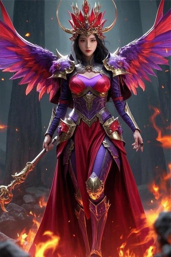 只見她頭戴紫金皇冠,一身紫紅甲胄無比的高貴典雅,背後羽翅껩是紫紅相間。
