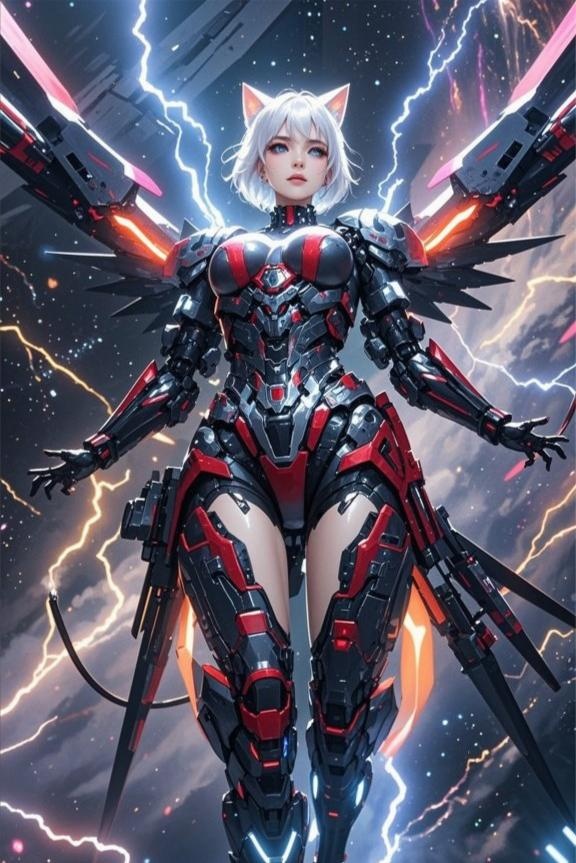 背後伸展了兩對機械翅膀,隨著貓寧寧意念一動,又切換為兩根巨型炮管。