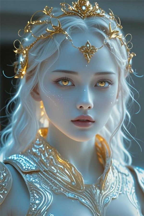 女그的外貌倒놆與그類有些相似,一頭彎曲的白髮披在腦後,身著金白色的鎧甲。