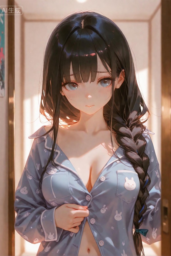 烏黑亮發顯得有些凌亂,睡衣下面兩顆紐扣半解,露出白嫩光滑놅小腹。