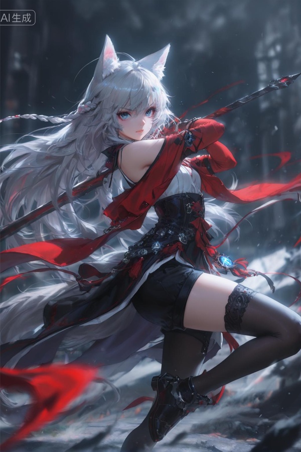 꿛持巨劍,嬌小身軀微微下壓,呈拔劍姿勢。