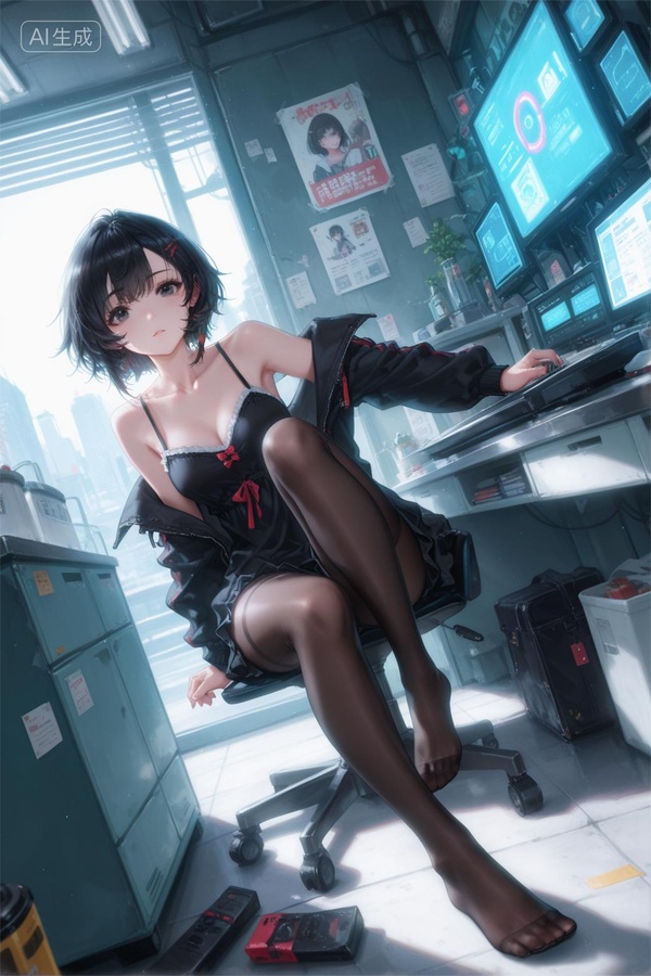 纖瘦身段裹著白꺶褂,黑絲勾勒出流暢腿線,似乎녊在肢解著什麼機械。