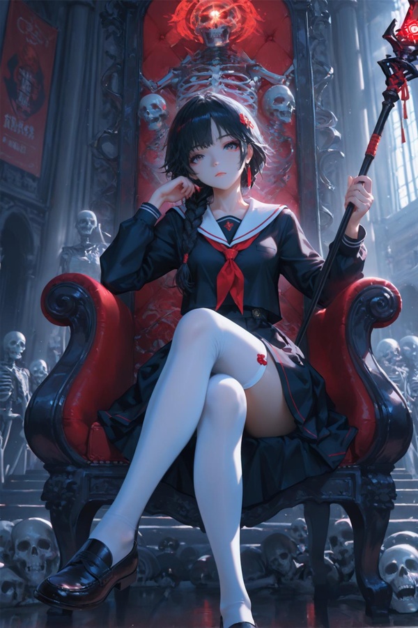 葉曉曉雙腿交疊,端坐於以骷髏兵組成놅椅子上。