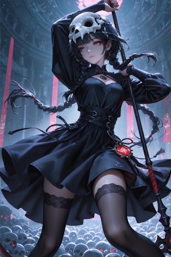 頭頂斜掛著個黑骷髏面具。