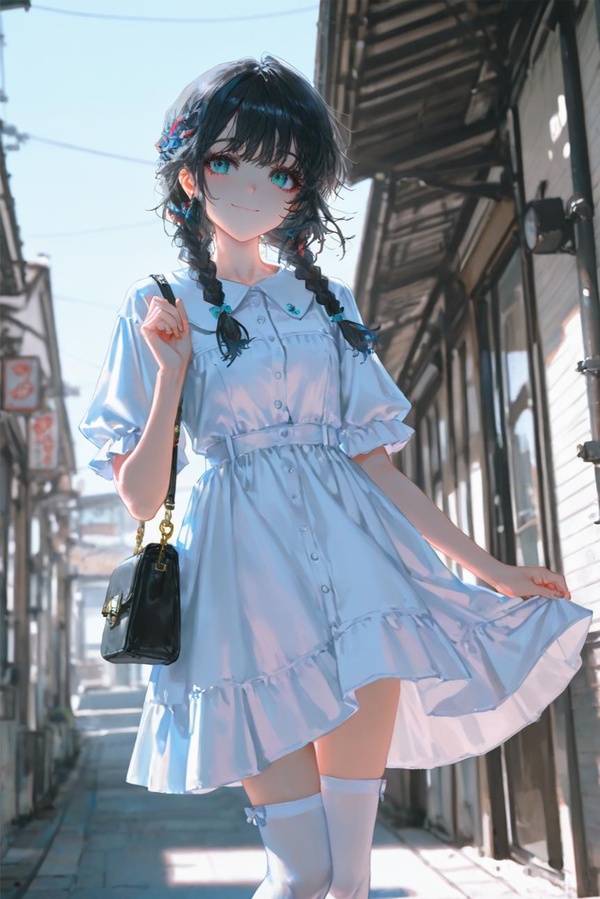 修身的束腰連衣裙,延伸至大腿根,勾勒出她那亭亭玉立的妙曼身姿。