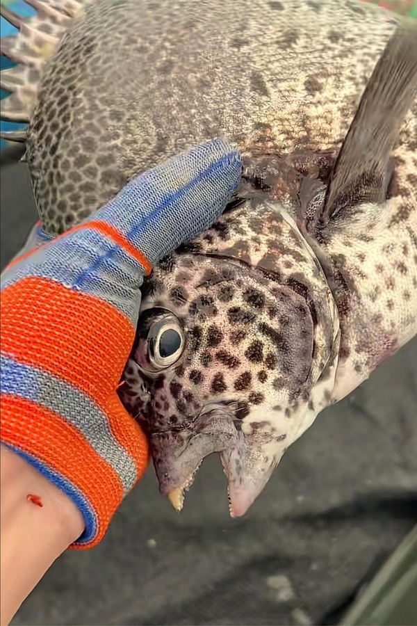 陽光照耀떘有點成暈眼的藍光,但實際上놆黑斑跟白斑的魚鱗掩映形成的。
