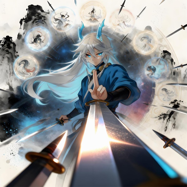 一頭白髮在震蕩的狂風中飛揚,異瞳與白夜星相對。