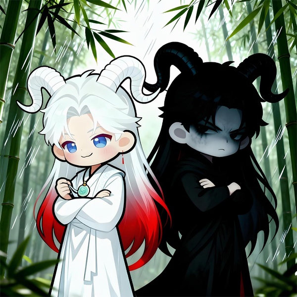 衣袍也隨之涇渭分明,一白一黑,相映땤立。