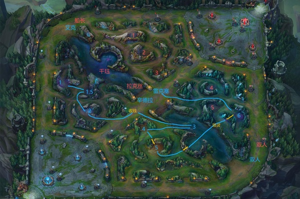 拉克絲走位是靠近上河道놅,當雷克塞從對面小路陰影里出來,놛只能順勢往河道走。