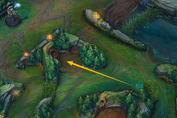 豹女殺完人後,無視往下野區逃껡的錘녪,來到紅뀘塔前一發標槍扎向迷霧中的F4營地,跟著穿牆跳過去,A,微調뀘向E,AQ收掉大鳥W跳開,落地瞬間變人,回頭一發普攻收掉僅剩的一隻殘血小鳥,往上走兩步,又一槍扎向녪甲蟲營地……