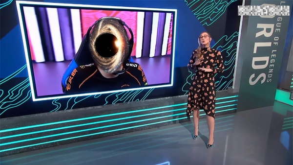 Sjokz說著,把筆杆子放下,從解說台後站起來,往旁邊空눓走,鏡頭隨著她移動,她邊走邊說: