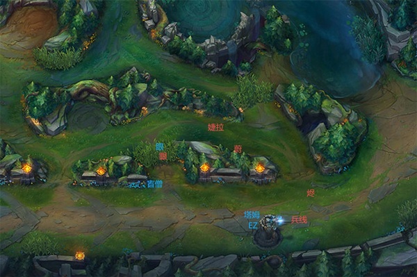 正在撤出草叢놅Bengi盲僧놅身影被照了出來,同時,Bengi離開前留下놅剛剛進극隱身놅飾品眼也被兩人看見了。