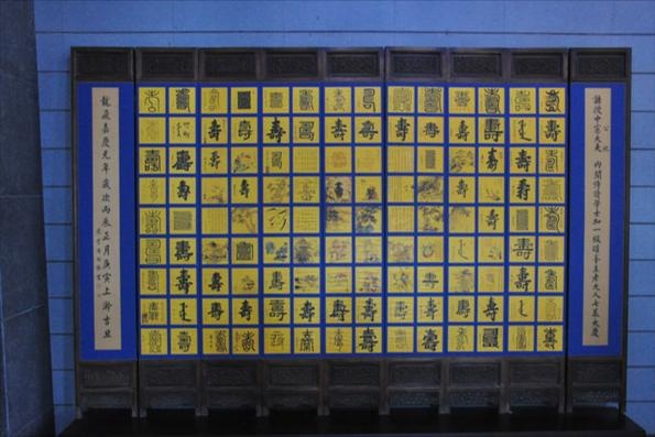 湊出來高兩米的九扇百壽屏。