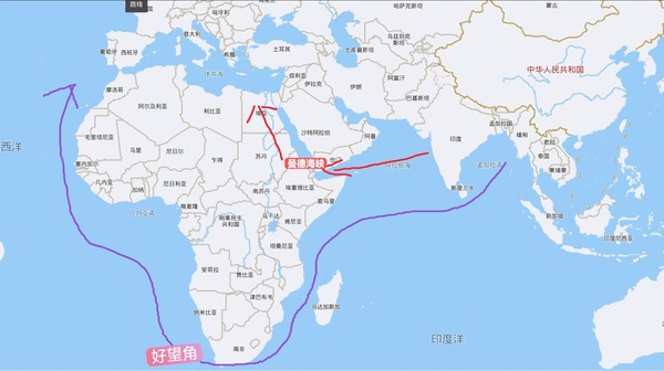 如掐斷曼德海峽,歐洲,亞洲所有貨輪,軍備,都得走非洲好望角,繞完整個非洲大陸一半。
